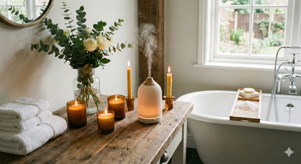 Para que o ritual de beleza seja realmente eficaz, o ambiente exerce um papel fundamental. Afinal, transformar a rotina diária em um momento de spa e autocuidado vai muito além dos produtos utilizados. Mesmo sem um spa profissional em casa, pequenas adaptações são suficientes para criar um verdadeiro refúgio de tranquilidade. Nesse sentido, pensar em todos os sentidos ajuda a potencializar a experiência de bem-estar.