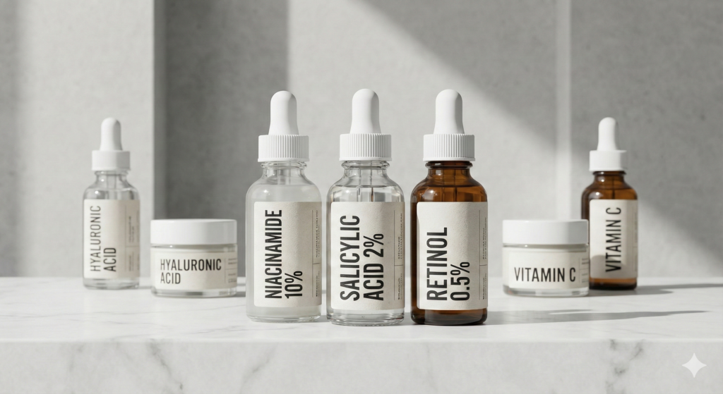 Antes de mais nada, conhecer os ativos certos é essencial para montar uma rotina de skincare para pele oleosa realmente eficaz. A escolha correta dos ingredientes faz toda a diferença no controle da oleosidade, prevenção da acne e manutenção da saúde da pele.